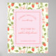 Welcome guests to your baby shower with this charming “A Berry Sweet Girl is on the Way”! Featuring a delicate watercolor strawberry design, lush green leaves, and a scalloped pink border, this sturdy, high-quality sign sets the perfect tone for your celebration.