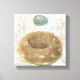 © Moira Hershey / Wild Apple. A bird's nest made of brown branches with a decorative egg. There are sketches of plants and leaves in the background.