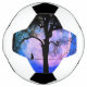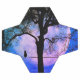 Fantastic full moon of purple hues and cobalt blue skies with a black cat on wire looking at it