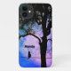 A Black Cat on a Wire Full Moon Name Case-Mate iPhone Case
