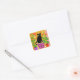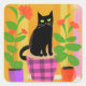 A Black Cat With Houseplants Pink Purple Seat Square Sticker
