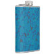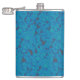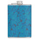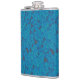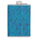 a blue and black background with a pattern hip flask