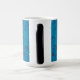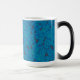 a blue and black background with a pattern magic mug
