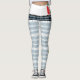 a blue and white pattern with a white background leggings