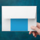a blue background with a black and white cat envelope