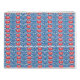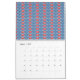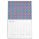 a blue background with red and white designs calendar