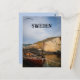 This postcard features traditional wooden rowboat moored by the pink granite rocks of the Swedish west coast in Knödestrand, Sweden. Photo credit: Rasmus Järborg, 2021.