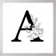 Elegant A letter monogram poster with flowers and lives. Black and white botanical illustration. Initial letter poster nurseries, bedrooms, part of home decor. Personalised gift idea.