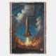 A Breathtaking Retro Fusion Rocket Launch Throw Blanket