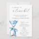A Bride In A Tini Bit Blue Martini Bridal Shower Invitation - Celebrate the bride to be with this blue martini themed bridal shower invite. Featuring a beautiful blue cocktail with a coquette blue bow. A mixture of dainty script and elegant block font. Customise this editable bridal shower invitation template with your own event details. Available in digital format as well as to order for prints. Perfect for a martini or cocktail themed bridal shower, "A Tini Bit" themed bridal brunch or blue bridal shower theme.