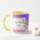 A Birthday photo mug with a bunch of colourful balloons flying up into the sky frame, plus the customisable text "Happy Birthday" on the front and back. Add a photo to the front and a different photo to the back, or have both the same.