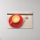 Asset ID: 105647146 / Lori Lee Miller / A bright red cup of espresso coffee on a picnic table outdoors on a summer day.