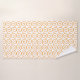 This elegant brown and orange rug showcases a striking repeating pattern motif that is perfectly complemented by the vibrant bright orange wrapping paper featuring a similar design. Add a touch of sophistication to your living space with this beautifully coordinated home decor piece.