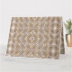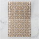 A brown rug displaying a symmetrical design featur card