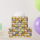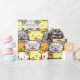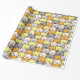 Fun and cute wrapping paper features a pattern of bold and colourful cat heads.