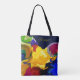 The colours on this tote bag makes me smile. This is a printed image of an acrylic painting with burst of yellow, fushia, green and blue colours.