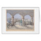 The Bancroft Library Presents: Image of General Don Andres Pico (1810-1876) of Los Angeles, 1865, showing corridor of farm building (ex-mission of San Fernando) with men, women, children, and animals in foreground. Includes the southern mission orchard and vaqueros lassoing cattle in distance. Painted by Edward Vischer in 1865.