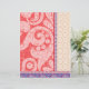 • Background: A rich red colour with an elaborate and dense pattern, adding texture and depth.