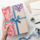 • Background: A rich red colour with an elaborate and dense pattern, adding texture and depth.
