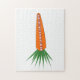 This awesome puzzle features a cartoon of a carrot. Someone has munched into the carrot leaving the word reindeer etched into the flesh of the vegetable. This is a Christmas treat for the Reindeer.