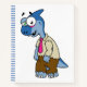Cartoon illustration of a cartoon Parasaurolophus dressed up as a zombie.