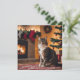A personalised Christmas Card featuring a decorated room that is complete with a beautiful kitty cat, a Christmas tree, a fireplace, and stockings hanging from the mantle.