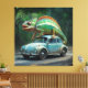 A chameleon perched on a car in a vibrant painting canvas print