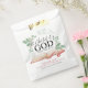 Send guests home with a sweet reminder of this special celebration! This charming favor bag features soft light greens, gentle red accents, and an open Bible, beautifully complementing a faith-filled baby shower. Perfect for holding small treats, candles, or keepsakes, it’s a thoughtful way to share gratitude and blessings with loved ones.