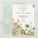 A children's party invitation with a princess, a castle, and dinosaurs. The text invites guests to a birthday party. Fun and whimsical theme.