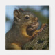 This detailed close up photograph shows an adorable little chipmunk (or squirrel?) pausing on a tree branch with a nut shell held in it's mouth, as it hurriedly scurries about collecting food to store away.