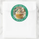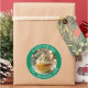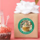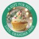 A cute Christmas sticker food label with a vanilla cupcake in a gold liner, vanilla frosting and sprinkles with red and green sprinkles. Stick on your homemade plate of cupcakes!