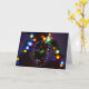 A hand holds a crystal ball in front of a vibrant, multicolored display of out-of-focus holiday lights. The sphere captures and reflects a beautifully sharp view of a decorated Christmas tree. This Christmas greeting card features a cover photograph and hand-drawn artwork by the Chief Photographer can creator of God Bless the Keg Publishing LLC, Mr. Paul John Hausleben.