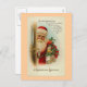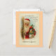 Classic vintage Christmas image of Santa Claus at the door bearing gifts and holly. The message is "See dear Santa's jolly face As he comes on tip-toe pace, Bringing with him joy and cheer For all my dear little friends here." The larger greeting is "A Christmas Greeting".