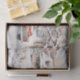 A Christmas Scene with a Snow-Covered Cabin in a Forest complete with a Vintage Style Red Tuck tissue paper