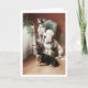 A holiday greeting card with the fine art painting by the Austrian born artist Carl Reichert (1836-1918), A Christmas Treat. Three dogs, a poodle, beagle and dachshund sitting looking up at a tree. Verse inside - Merry Christmas and Happy New Year!