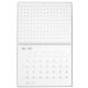 A clean white backdrop featuring tiny dots scatter calendar
