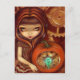 A steampunk take on a Jack-o-lantern - a Clockwork Pumpkin! This lovely girl has created a mechanical pumpkin with an eerie blue/green light within. Lovely gears & clockwork accents in the background add to the steampunk flair. My own original acrylic painting.