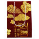 Golden Auspicious clouds + Ox paper-cut, Year of the Ox, greeting in Chinese and large 2021 written in calligraphy style. All elements can be moved you as you wish. Design on medium gift bag with gradient dark red background. Available in large, small and wine gift bags. Matching greeting card, invitation and more... Perfect for a traditional and modern Chinese New Year of the Ox 2021.