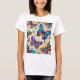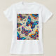 a colourful butterfly pattern shirt with many butterflies flying around.