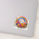 This vibrant display features a joyful arrangement of stickers showcasing a rainbow arching over an explosion of colourful flowers. The delightful text Groovy Feeling adds a whimsical touch, perfect for brightening spaces and uplifting spirits.