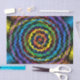Abstract digital art of rainbow coloured shapes that are blurred and wavy, arranged in a circular motion
