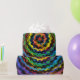 Abstract digital art of rainbow coloured shapes that are blurred and wavy, arranged in a circular motion