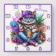 A stylish cat lounges with a beer, wearing sunglasses and a cap, surrounded by colourful plants and a skateboard, embodying a laid-back party vibe.