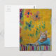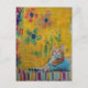 A Cool Ginger Kitty Yellow Floral Mixed Media Postcard