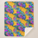 The fabric is really soft, and thick, I’m sitting here with it wrapped around me and it’s so warm! It’s really smooth and sleek on the printed side and fluffy on the back. I love it! Such good quality, so vibrant and clear, not blurry at all! See the photos I’ve attached, there’s no filters or anything on them!