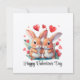 A couple of funny watercolor rabbits surrounded by flowers and hearts. A wonderful Valentine's Day gift for a couple in love. The inscription on the product: Happy Valentine's Day