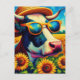 A Cow in Sunglasses in a Sunflower Field Postcard