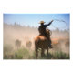 A cowboy out working the herd on a cattle photo print