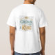 The t-shirt boasts the declaration "A Crown for a King" in a display of regal multicolor. Each word could be a distinct, powerful hue, signifying different aspects of royalty. Imagine a bold "A" in a majestic gold, transitioning to a rich purple for "Crown," and culminating in a strong red for "King," symbolising power and leadership.