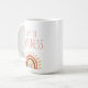 A beautiful gift for tea and coffee lovers! Simple, modern typography with the words "A CUP OF HAPPINESS" and a boho rainbow graphic in earthy tones.
